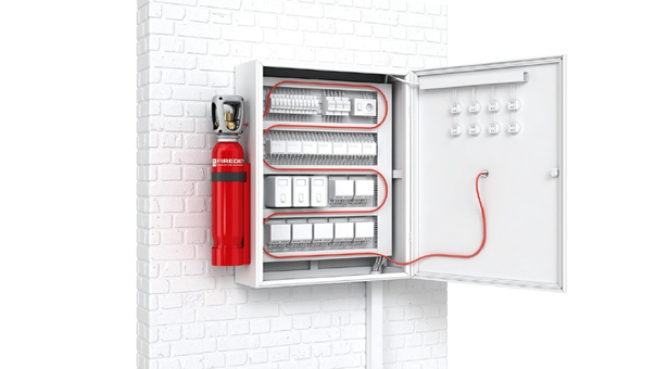 These are low cost systems that use FM 200 (HFC227ea), NOVEC 1230 (FK5-1-12) or CO2 as suppressant in order to protect cabinets and machinery instead of protecting the whole enclosure. The system is activated when the detection tube that is filled with nitrogen at 25 Bars is damaged by flames at 100 C°. Once the nitrogen is discharged, the locking mechanism is activated and fire suppressant is then discharged into the protected enclosure. In case the system needs to be supervised through a pannel, an electrical connection may be installed.